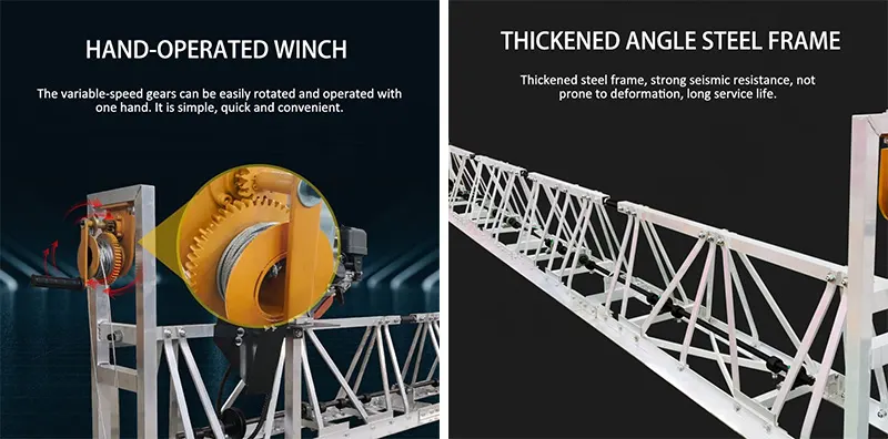 الصين تصنيع 4M من الألومنيوم من الألومنيوم الاهتزاز الجليدية تأثير تسوية التسوية المسبقة جيدة ، يمكن تشكيل عرض الرصيف في وقت واحد في حدود 4-18 متر ، مما يمكن أن يقلل من إجراء مفصل البناء الطولي. نظرًا لأن مسار الجري مفصولًا عن templated ، فإن أعمال التسوية لا تتأثر بالتسطيح للطبقة الأساسية ، والتي يمكن أن تضمن نعومة سطح الطريق ، والسطح الخرساني بعد الصب لا يحتوي على سطح طحن قرص العسل ، والتشققات المقلية والحجر المكشوف ، والجودة سهلة.